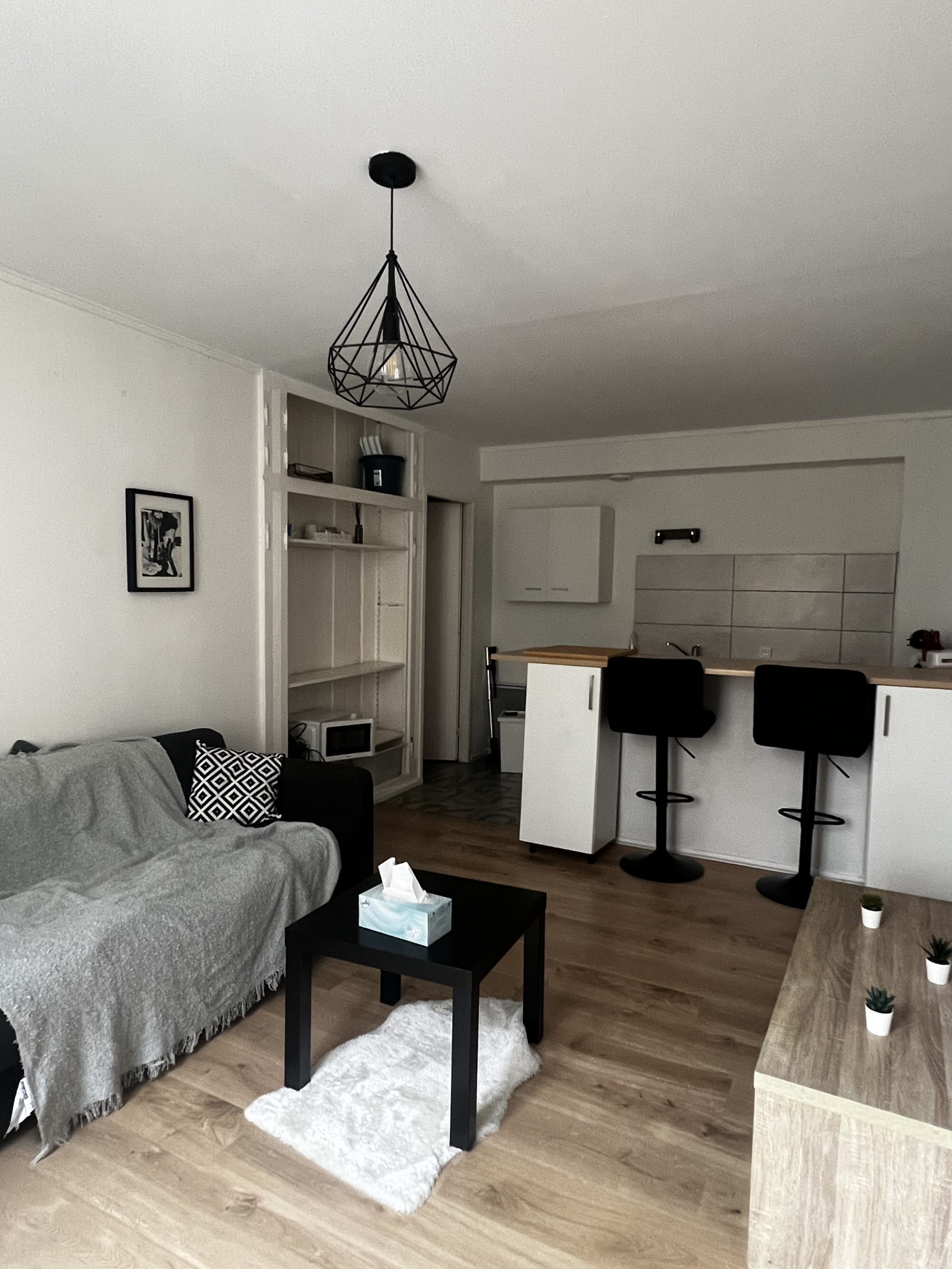 Cet appartement est composé d'un séjour avec kitchenette ouverte, une chambre, salle d'eau, wc ainsi que plusieurs rangements
