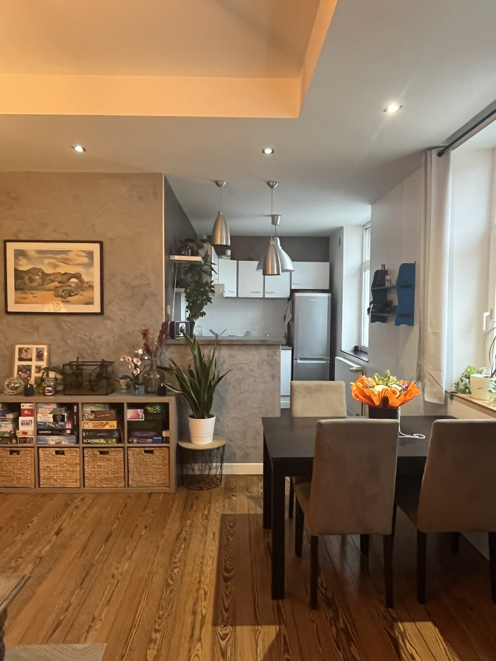 L'appartement se compose de la façon suivante : une entrée dservant une salle d'eau avec wc, 2 chambres, un séjour ainsi qu'un espace cuisine équipée et ouvert.