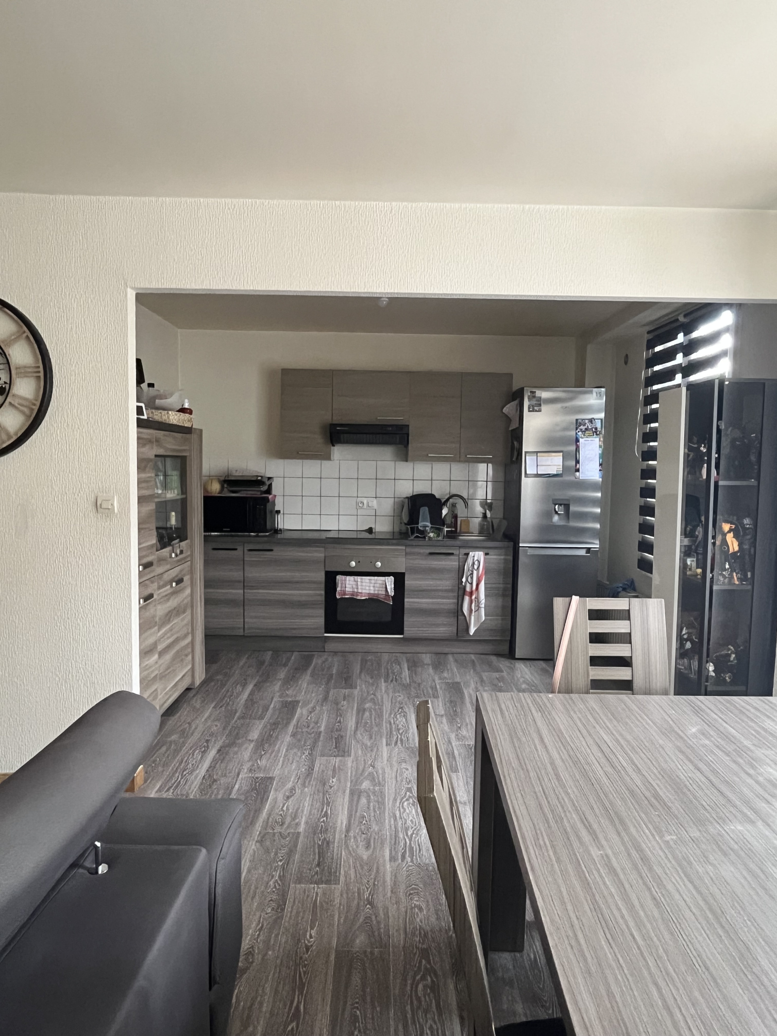 L'appartement se compose de la façon suivante : une entrée, un salon/salle à manger avec cuisine ouverte équipée.