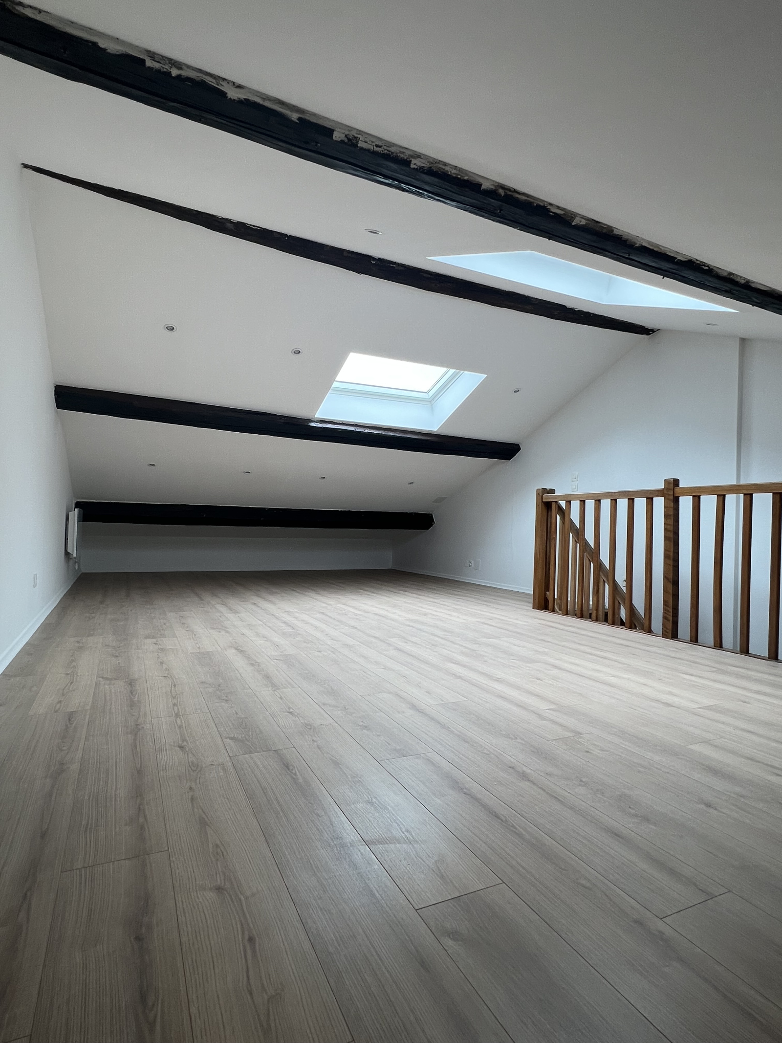 Au 2e étage, un grand espace de 40m² au sol, sous comble.
