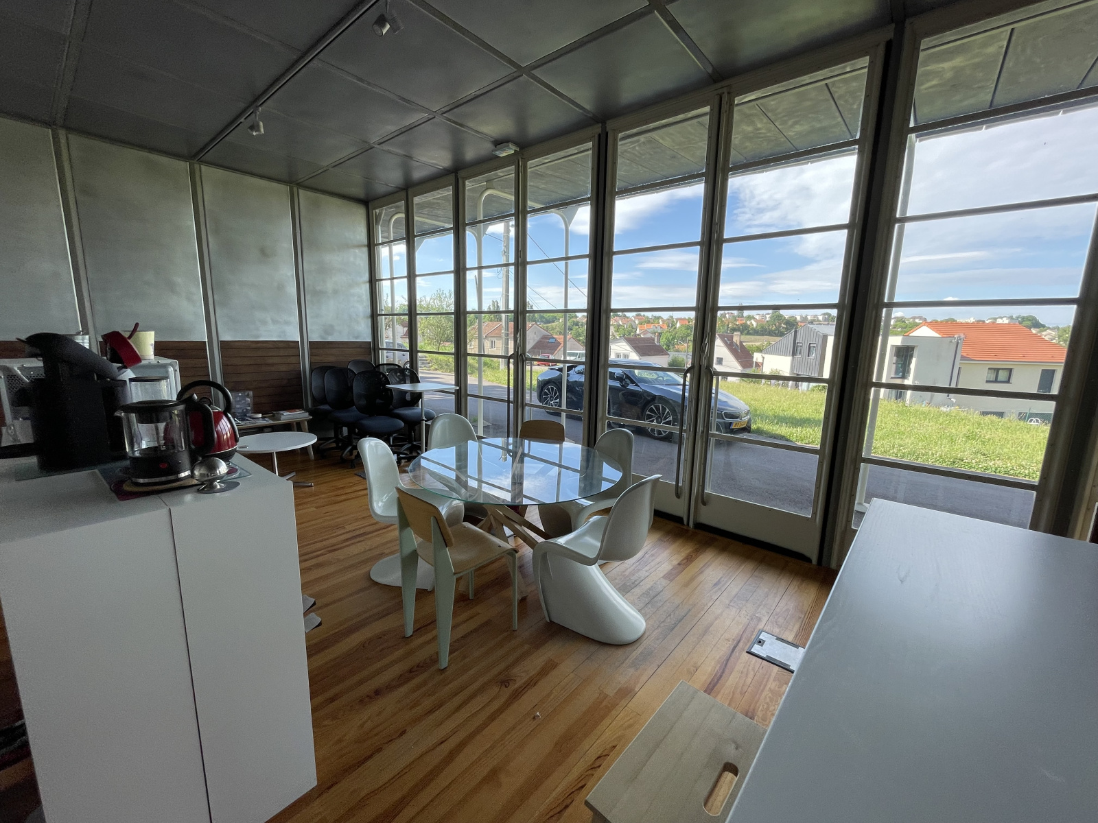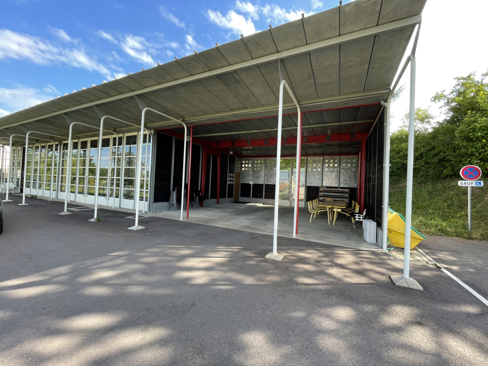 Composée d'un préau, de bureaux lumineux, salle d'attente, kitchenette, wc personnel et public, stationnements accès et normes PMR