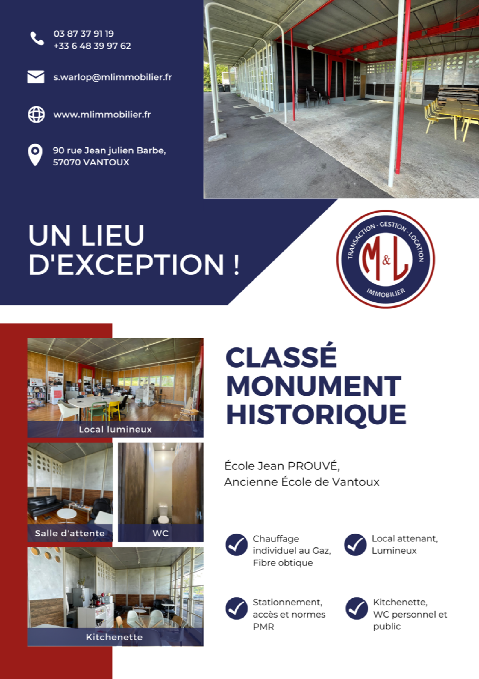 Située sur la commune de VANTOUX (57070), Ecole JEAN PROUVE (ancienne école de VANTOUX), entièrement  rénovée.