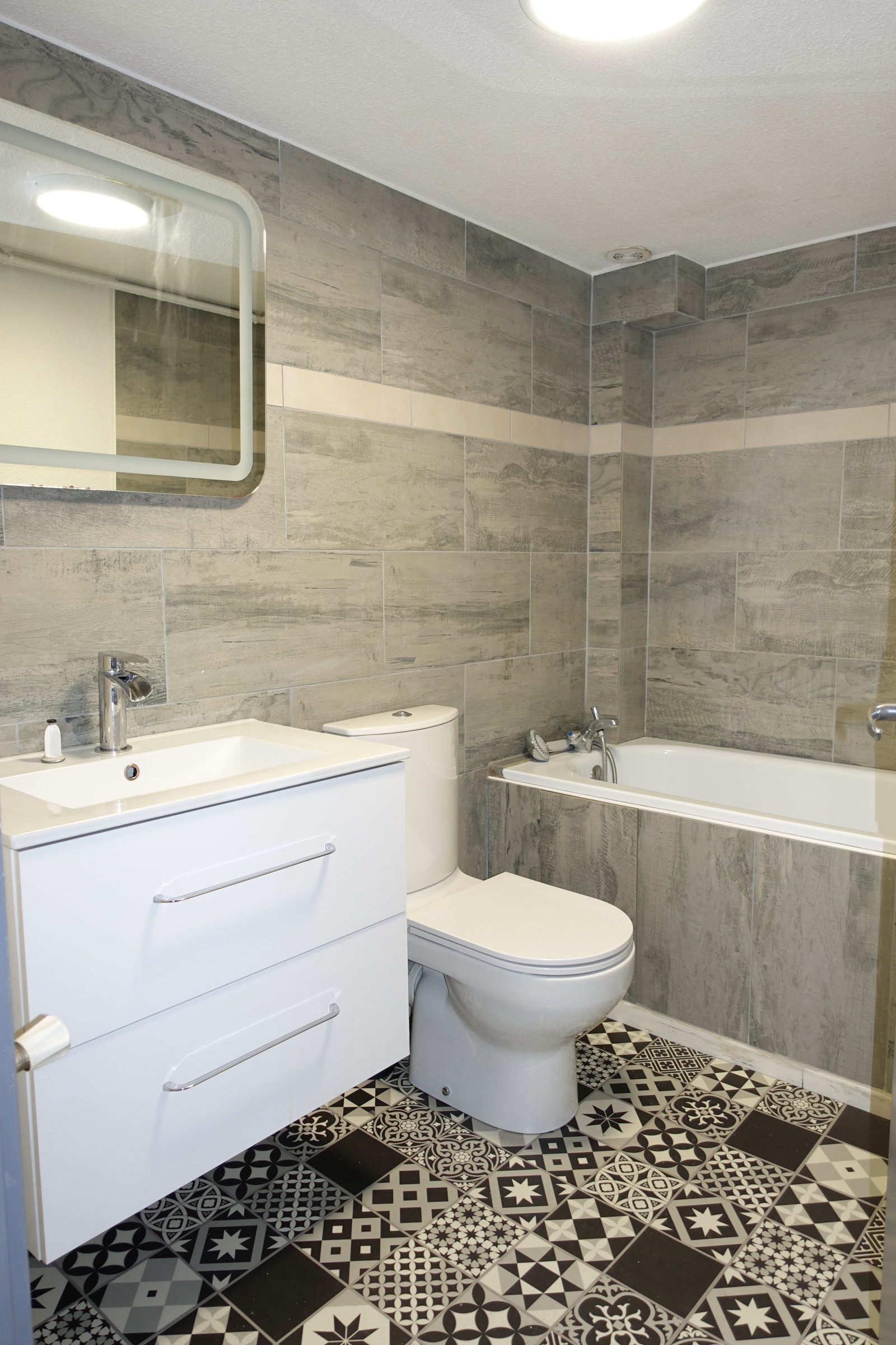 Comprenant une pièce principal avec cuisine équipée, séjour, une salle de bain avec baignoire et toilette et 2 chambres.