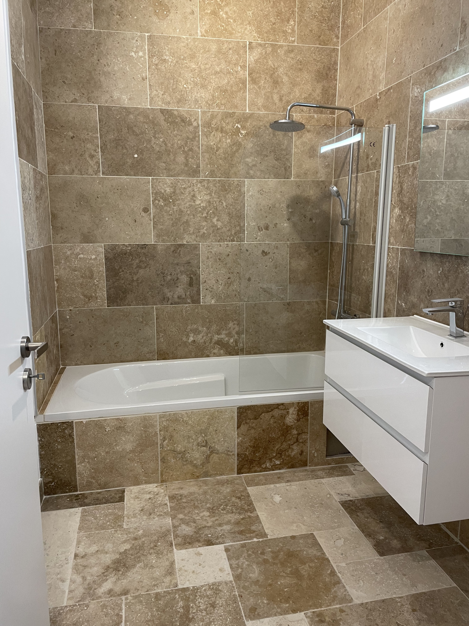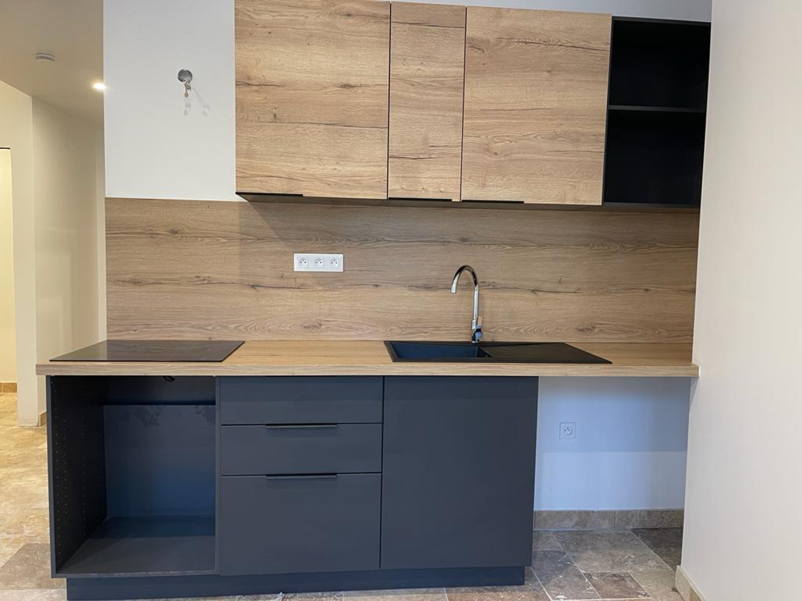 Il se compose d'une cuisine équipée complète avec un lave vaisselle, un frigo, une hotte, plaques, four..., d'une salle de bain ainsi d'un WC séparé.
