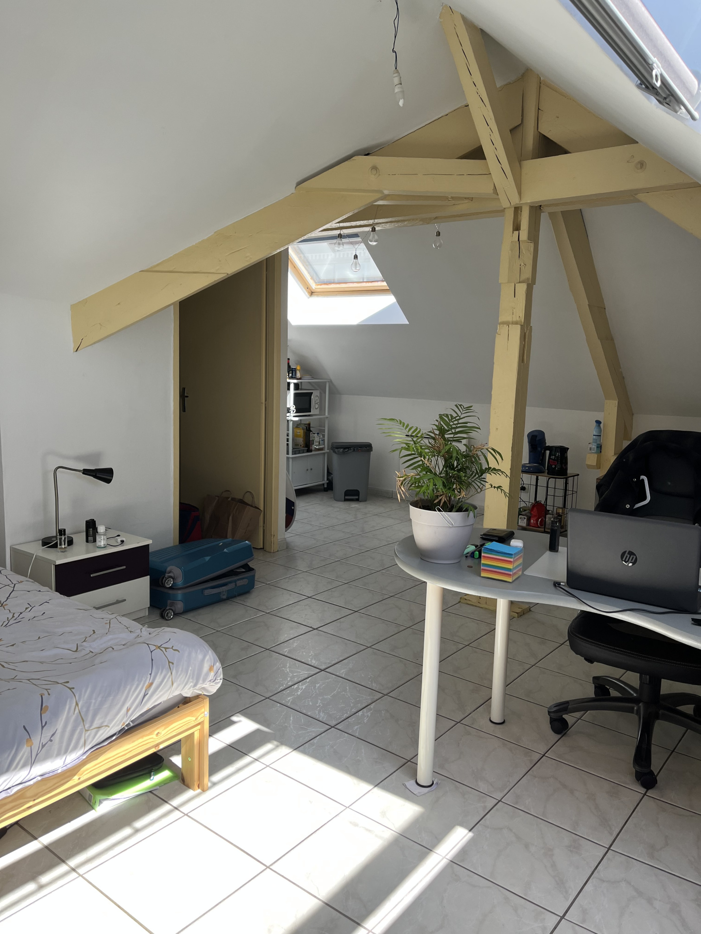 Studio dans un bel immeuble de caractère, au 4eme étage, comprenant un coin cuisine, une belle pièce de vie avec poutres apparentes, salle d'eau et wc.