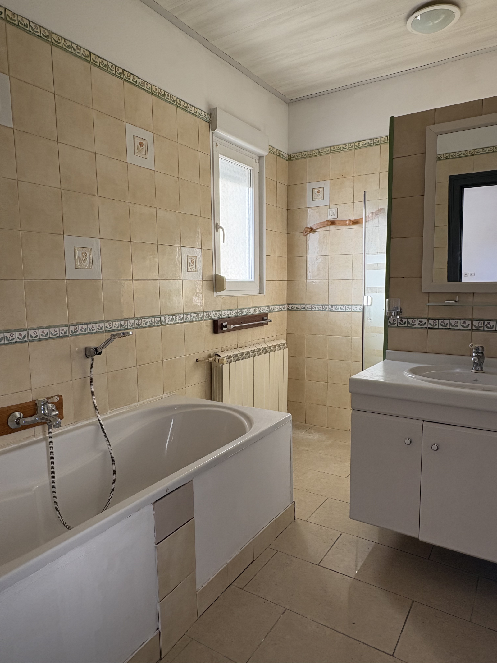 maison de 100,89m2 composée de la façon suivante : un séjour avec cuisine séparée, une salle de bain avec douche et baignoire,
