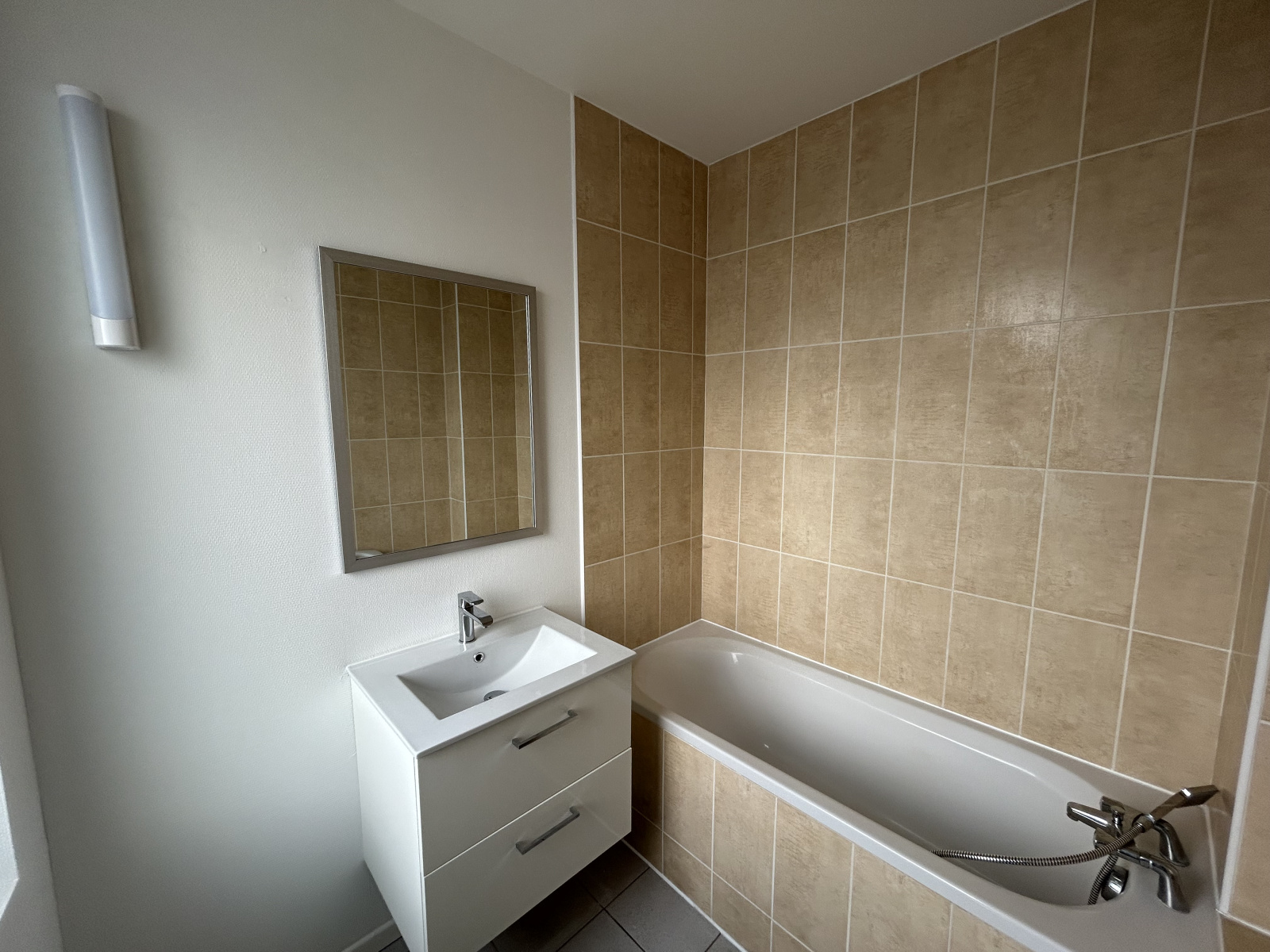 L'appartement se compose d'un séjour avec cuisine ouverte équipée, une salle de bain avec wc, une chambre ainsi qu'un espace dressing/bureau